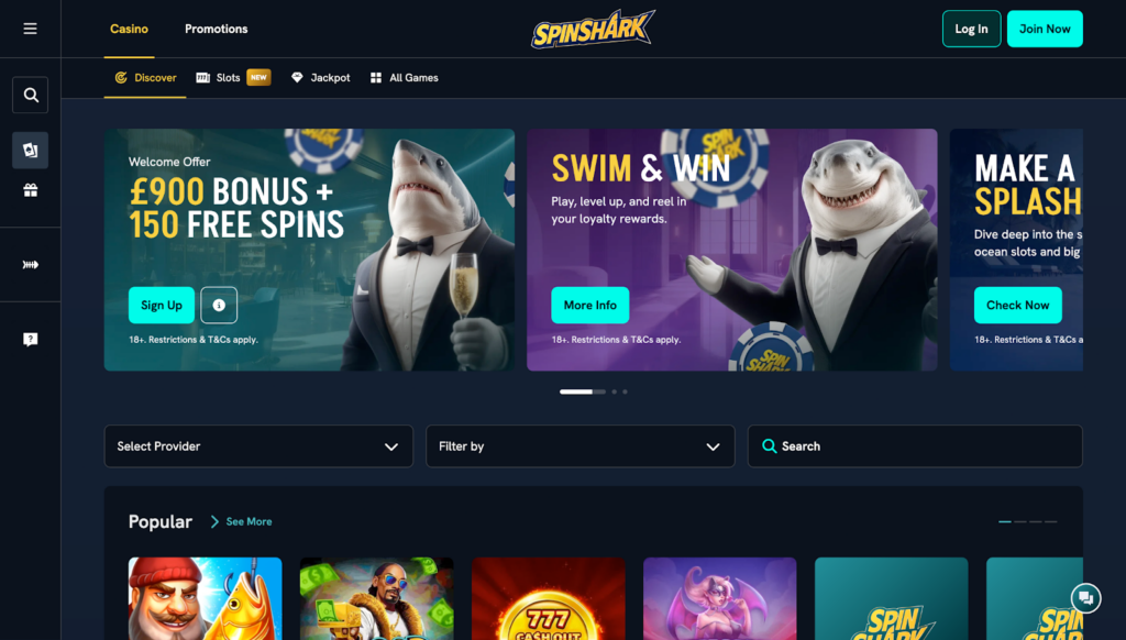 SpinShark feels built for players who want freedom. As a Non Gamstop casino, it lets players from the UK enjoy flexible limits, fast payments, and fewer restrictions than traditional online casinos in the UK.