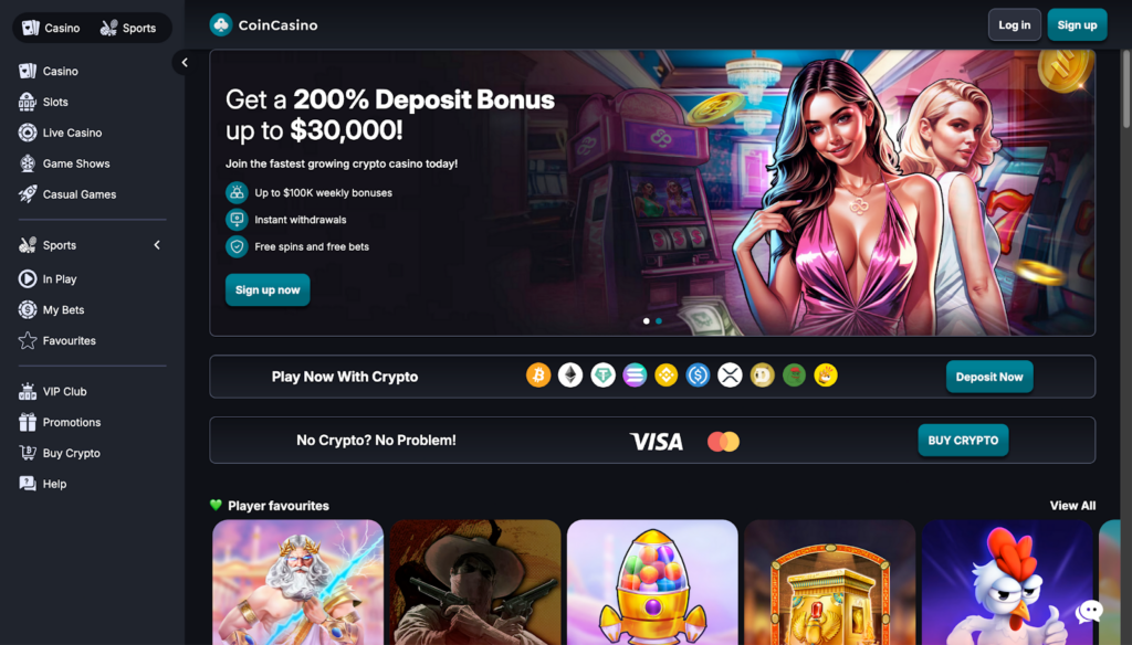 - Coin Casino Pro – 200% crypto welcome bonus up to $25,000